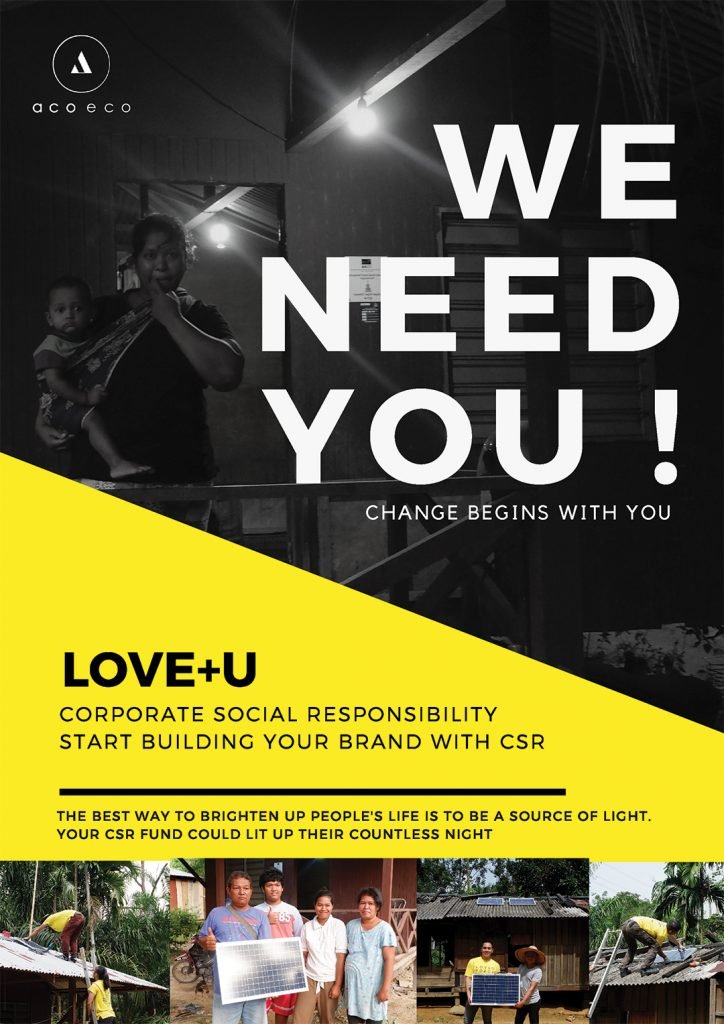 Love+ U CSR Program is a customized CSR program for corporate to enhance brand image by installing basic solar system and lighting facilities for Orang Asli in rural area. The LOVE needs YOU and your participation, join us now!